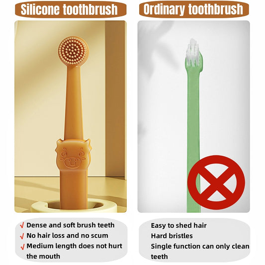 Dog Toothbrush, Pet Silicone Toothbrush Cat Tooth Brushing Kit with Storage Cup, 360° Doggie Kitten Toothbrush Tongue Cleaning Brush, Dental Care for Small Pets Ferret Dutch Pigs